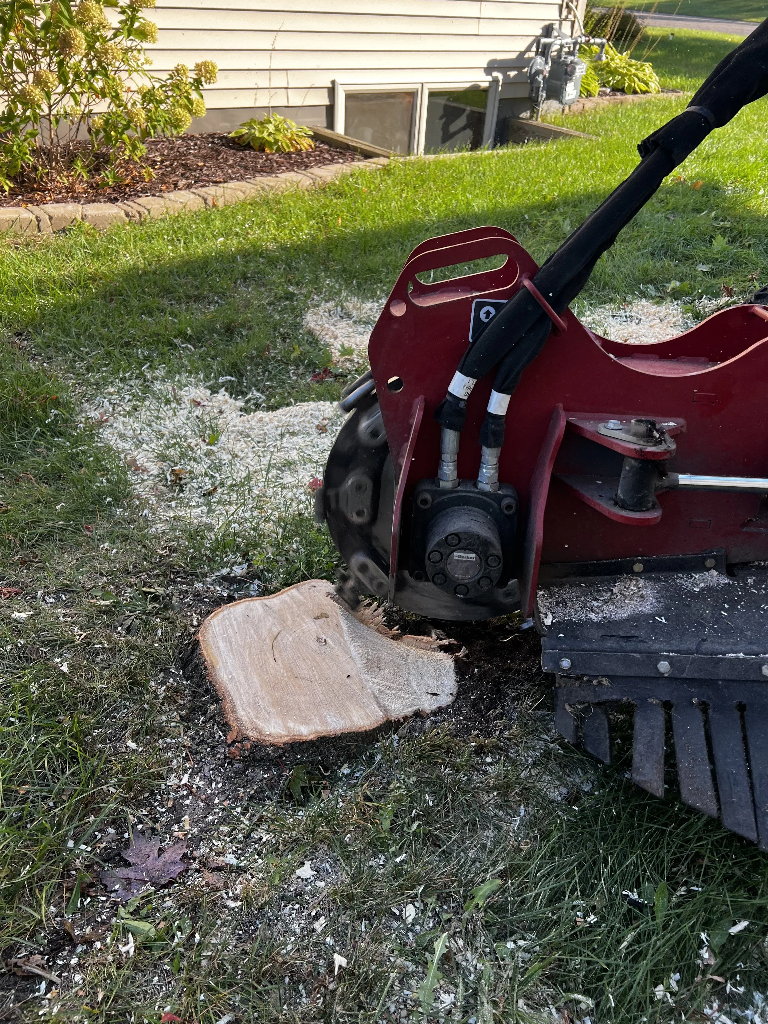 After the trees come down, the stumps don't have to stay. Our stump grinder takes care of what's left behind — grinding stumps down below grade so the area can be seeded, built on, or simply cleaned up without an eyesore in the way.